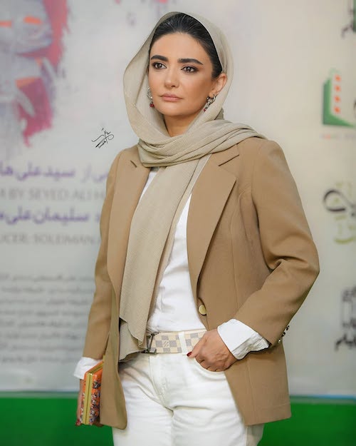 او برای این مراسم، کت کرمی‌رنگی را با شلوار و کفش سفید ست کرده بود؛ ترکیبی مینیمال و کلاسیک که از نظر رنگی هماهنگ و متعادل به نظر می‌رسید؛ اما نکته‌ای که در ظاهر او کمی ناهماهنگ جلوه می‌کرد، فرم و قد شلوار انتخابی‌اش بود که به‌دلیل بلند بودن بیش از حد، در کنار صندل‌های پاشنه‌دار و تا حدودی دمده‌ی او، بخشی از ظرافت تیپ را از بین برده بود.