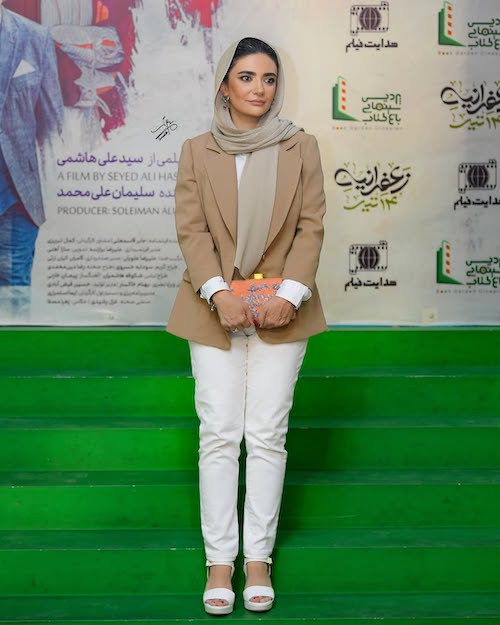 او برای این مراسم، کت کرمیرنگی را با شلوار و کفش سفید ست کرده بود؛ ترکیبی مینیمال و کلاسیک که از نظر رنگی هماهنگ و متعادل به نظر میرسید؛ اما نکتهای که در ظاهر او کمی ناهماهنگ جلوه میکرد، فرم و قد شلوار انتخابیاش بود که بهدلیل بلند بودن بیش از حد، در کنار صندلهای پاشنهدار و تا حدودی دمدهی او، بخشی از ظرافت تیپ را از بین برده بود.