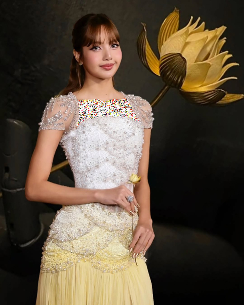 لالیسا در این مراسم لباسی از برند «میس سوهی» (Miss Sohee)، طراحیشده توسط یک طراح کرهای، به تن داشت که کاملاً با فضای سریال هماهنگ بود. طراحی این لباس با الهام از گل نیلوفر انجام شده بود و جزئیات هنرمندانهای داشت که آن را به یک اثر خاص و چشمگیر تبدیل کرده بود. بافت لطیف، فرم مجسمهوار و درخشش سنگهای کارشده روی پارچه، جلوهای رؤیایی به استایل او بخشیده بود. این انتخاب هوشمندانه، نهتنها زیبایی طبیعی لیسا را برجسته کرد، بلکه نشاندهندهی شناخت او از مد و تواناییاش در انتخاب لباسهایی بود که کاملاً با موقعیت و فضای رویداد سازگار باشند.