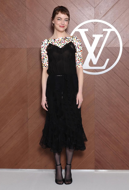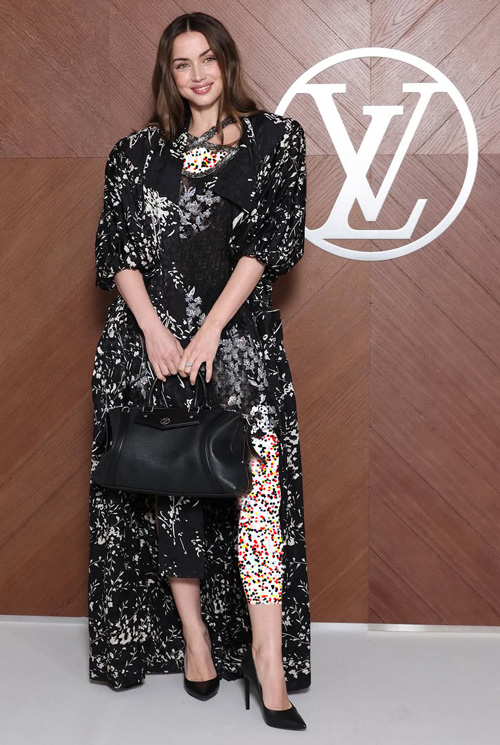 آنا د آرماس، بازیگر مشهور هالیوود و دیگر سفیر «لویی ویتون»، با پیراهنی شنلدار و حریر که تور مشکی آن با گلهای سفید تزئین شده بود، در این رویداد شرکت کرد. این استایل ترکیبی از لطافت و جذابیت را به نمایش گذاشت و نشاندهندهی سلیقهی خاص او در انتخاب لباسهای فاخر بود.