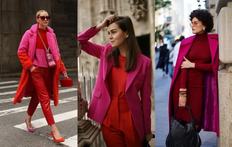 سرخابی و قرمز به دلیل نزدیکی در طیف رنگی و حس قدرتمندی که منتقل میکنند، در کنار یکدیگر تاثیری شگفتانگیز و متفاوت دارند. این ترکیب هم برای موقعیتهای خاص و هم برای استایل روزهای عادی، جلوهای ظریف و برجسته ارائه میدهد. اگرچه هر دو رنگ بهصورت جداگانه پررنگ هستند، اما در کنار هم خوشساخت و هماهنگ به نظر میرسند. این ترکیب جلوهای قدرتمند از مدرن بودن و تفاوت ایجاد میکند. پوشیدن این دو رنگ، جسارت و اعتماد شما به سبک خاصتان را نشان میدهد. ست این دو رنگ، بسته به سبک و موقعیت، میتواند برای مهمانیها، مراسم رسمی یا حتی استایلهای کژوال استفاده شود. استایلهای مختلف با ترکیب رنگ سرخابی و قرمز را میتوان به اشکال زیر به وجود آورد: