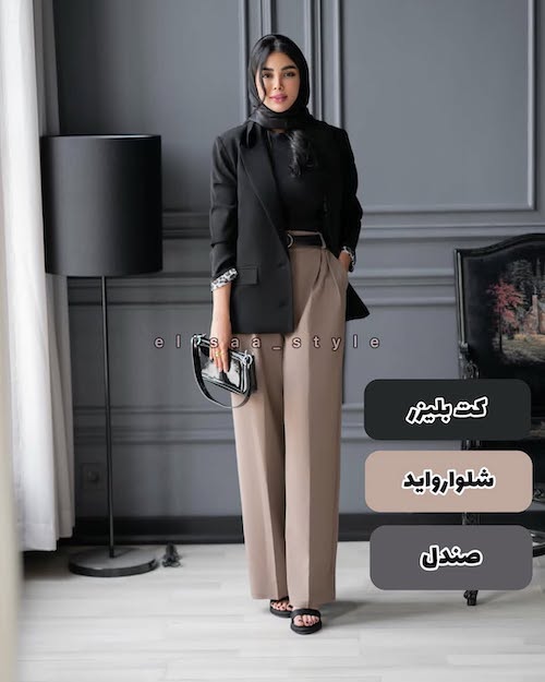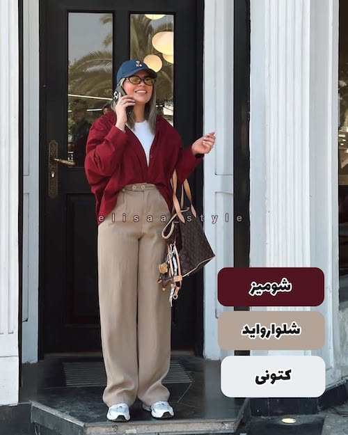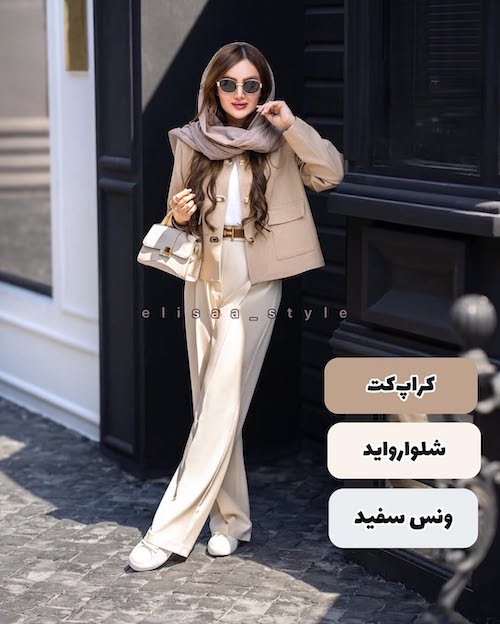 بالاپوش جذب یا کوتاه: برای حفظ تعادل در فرم بدن، بهتر است از تاپ یا بلوزهای جذب، نیمتنه یا بلوزهای کراپشده استفاده شود تا فرم گشاد شلوار به خوبی دیده شود.