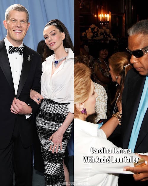 آن هاثاوی در اوتفیتی از «کارولینا هررا» مشابه با اوتفیت این طراح در ملاقات با آندره لئون تالی