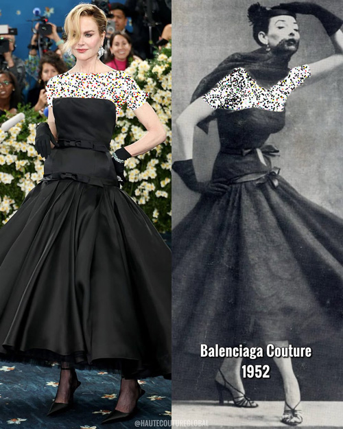 اکثر این اوتفیتها با تغییراتی اندک به منبع اصلی وفادار مانده بودند و به همین جهت مورد توجه قرار گرفتند. در ادامه نگاهی داشتهایم به تعدادی از لباسهای خاص مت گالا ۲۰۲۵ و رفرنس آنها. با چیبپوشم همراه باشید.