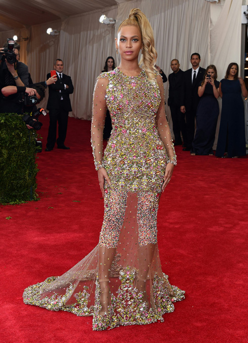 بیانسه نیز با ظاهری بسیار جذاب و چشمگیر در این مراسم حضور یافت. او لباس شفافی از برند «ژیوانشی» و به طراحی ریکاردو تیشی بر تن داشت که با کریستالهای طلایی پوشیده شده بود. گرچه لباس او ارتباط مستقیمی با فرهنگ چین نداشت، اما ظرافت و درخشش اغراقآمیز آن با روح تجمل و زیبایی تم شب همخوانی داشت.