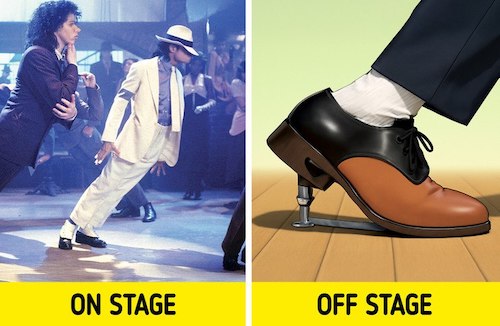 مایکل از کفشهایی با طراحی ویژه استفاده میکرد که به او اجازه میداد حرکات غیرممکن مانند «حرکت خم شدن ضد جاذبه» را انجام دهد. این کفشها در واقع دارای قفلهای پنهانی بودند که به صحنه وصل میشدند.