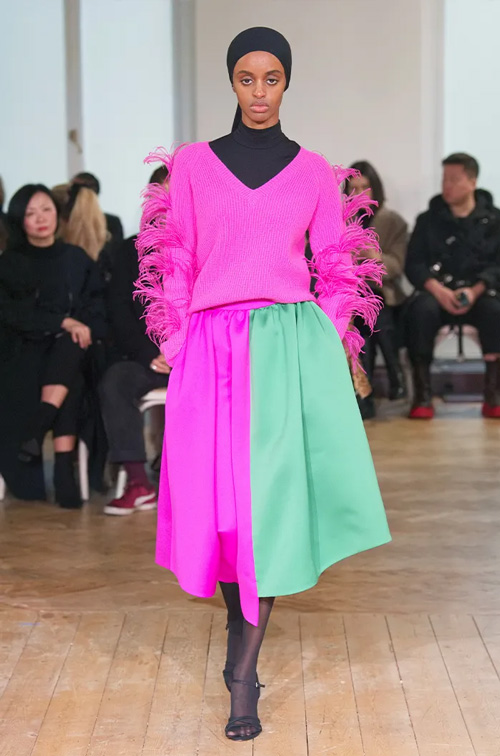 در دنیای مادست فشن به سادگی اهمیت زیادی داده میشود. مبلغان این سبک از پوشش معتقدند که با اعتقاد به چند قانون ساده مانند استفاده از رنگهای هماهنگ یا مکمل میتوان تیپی ترتیب داد که نگاه همه و البته تحسین آنها را جلب میکند. در تصویر بالا هم نمونهای از استایلهای این حیطه از مدوفشن را مشاهده میکنید. از دو رنگ سبز و صورتی بشاش و درخشان استفاده شده و کفشها که در واقع صندلهایی پاشنهدارند هم با جوراب پوشیده شدهاند.