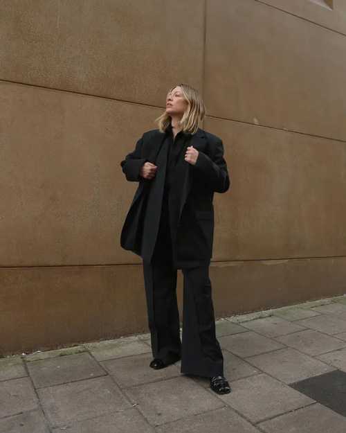 این خانم از یک کت و شلوار ساده اما خوش دوخت اورسایز برای تکمیل استایل خود استفاده کرده است و ضمن خوشپوشی، لباسهای پوشیدهاند و موقر. یکی از نکاتی که در اصول استایلینگ مادست فشن دیده میشود، لایهلایهپوشی است. از آنجا که پوشیدگی برای افراد تابع این مد اهمیت دارد، معمولاً از لایهلایهپوشی یا همان استفاده از چند لایه لباس روی هم خوششان میآید.