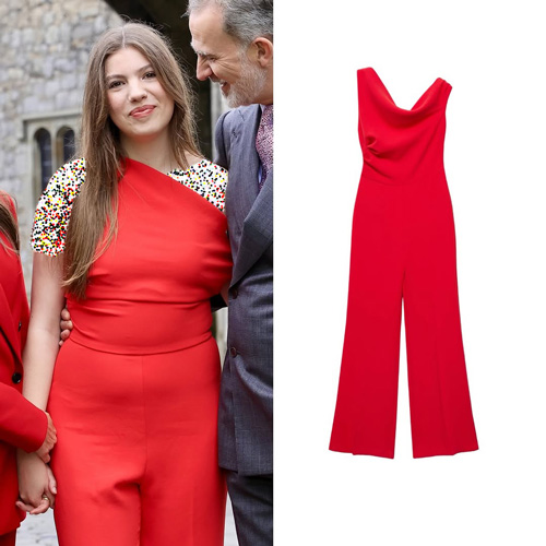 سوفیا با ظاهری درخشان و خیرهکننده توجه همه را به خود جلب کرد. او با انتخاب سرهمی قرمزرنگی که به زیبایی اندام کشیده و بلند او را به نمایش میگذاشت، استایلی چشمگیر و خاص را رقم زد. رنگ قرمز انتخابیِ او، نهتنها با روحیه شاد و جوانانهی مراسم همخوانی داشت، بلکه جلوهای خاص و متفاوت از سبک شخصی او را نیز نشان داد. سرهمی سوفیا با طراحی ساده و خطوط تمیز، نشان از ذوق و سلیقه او در انتخاب لباسهای مدرن و شیک داشت. مادر او، ملکه لتیزیا نیز با کت و شلواری قرمزرنگ و خوشدوخت در کنار سوفیا ظاهر شد. ست کت و شلوار او با طراحی دقیق و شیک، وقار و قدرت زنانه را به تصویر کشید و هماهنگی مادر و دختر در انتخاب رنگ قرمز نشان از پیوند عاطفی قوی و حس هماهنگی بین آنها داشت. انتخاب این رنگ گرم و چشمگیر، هم بر جذابیت شخصی ملکه لتیزیا افزود و هم استایل سوفیا را تکمیل کرد.