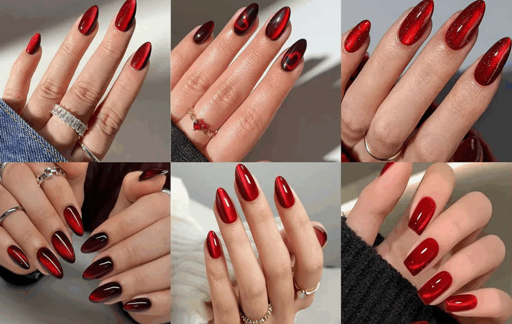 مدل ناخن قرمز چشم گربه‌ای