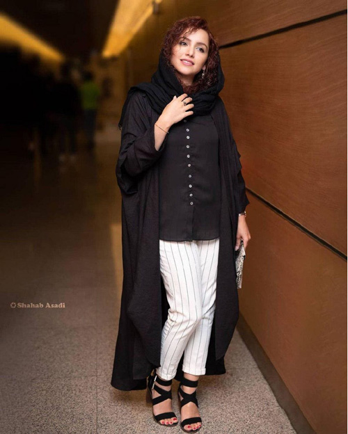 نازنین بیاتی قد آنچنان بلندی ندارد و انتخاب رویههای بلند و مانتوهایی با قد بلند، برای او زیاد مناسب به نظر نمیرسند. این نکتهها در استایلهای کنونی او دیگر دیده نمیشود. نمونهای از استایلهای قدیمی او را در تصویر بالا مشاهده میکنید. او از یک رویه بلند و مدلدار استفاده کرده و همچنین یک جفت کفش بسیار تخت اسپرت به پا دارد. مدل خمرهای شلوار پارچهای او هم در تکمیل این سِت نامناسب شکل یک کاتالیزگر عمل کرده است که نتیجه را با سرعت بیشتر به سمت نمرات منفی از دنیای مدوفشن سوق بدهد. مدل بستن روسری و تمام بخشها و قطعات پازل این استایل، در ناهماهنگی با یکدیگر و اندام و چهره نازنین هستند.