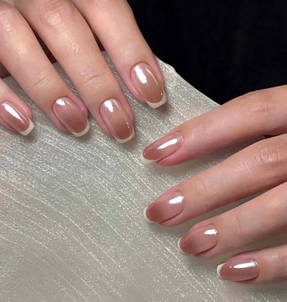 ناخن کوتاه با فرنچ نود خیلی مرتب، تمیز و طبیعی دیده میشن. به خصوص مدل مربعی یا بیضی که برای کار و روزمره عالیه. یه برق ملایم روش بزنی، دیگه محشر میشه.