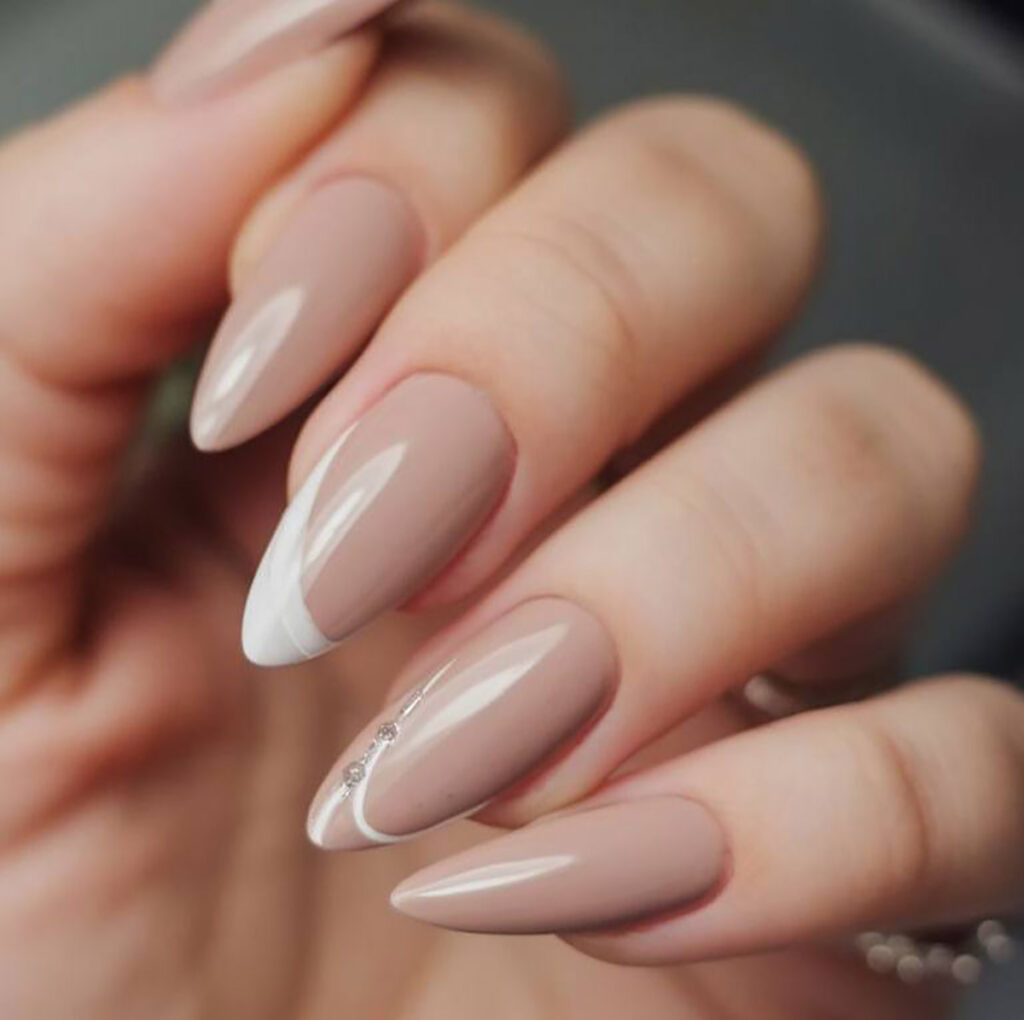 ناخن بلند اجازه میده با فرم فرنچ بازی کنی! مثلاً خط فرنچ رو منحنیتر یا کشیدهتر بکش. برای ناخن بادامی یا تابوتی، فرنچ نود فوقالعاده شیک و کشیده دیده میشه.