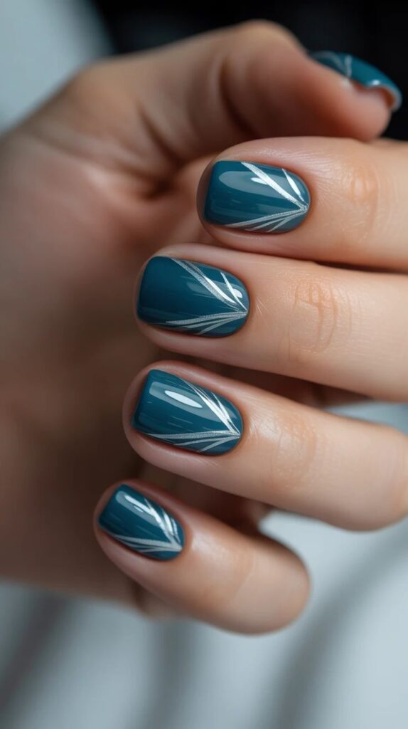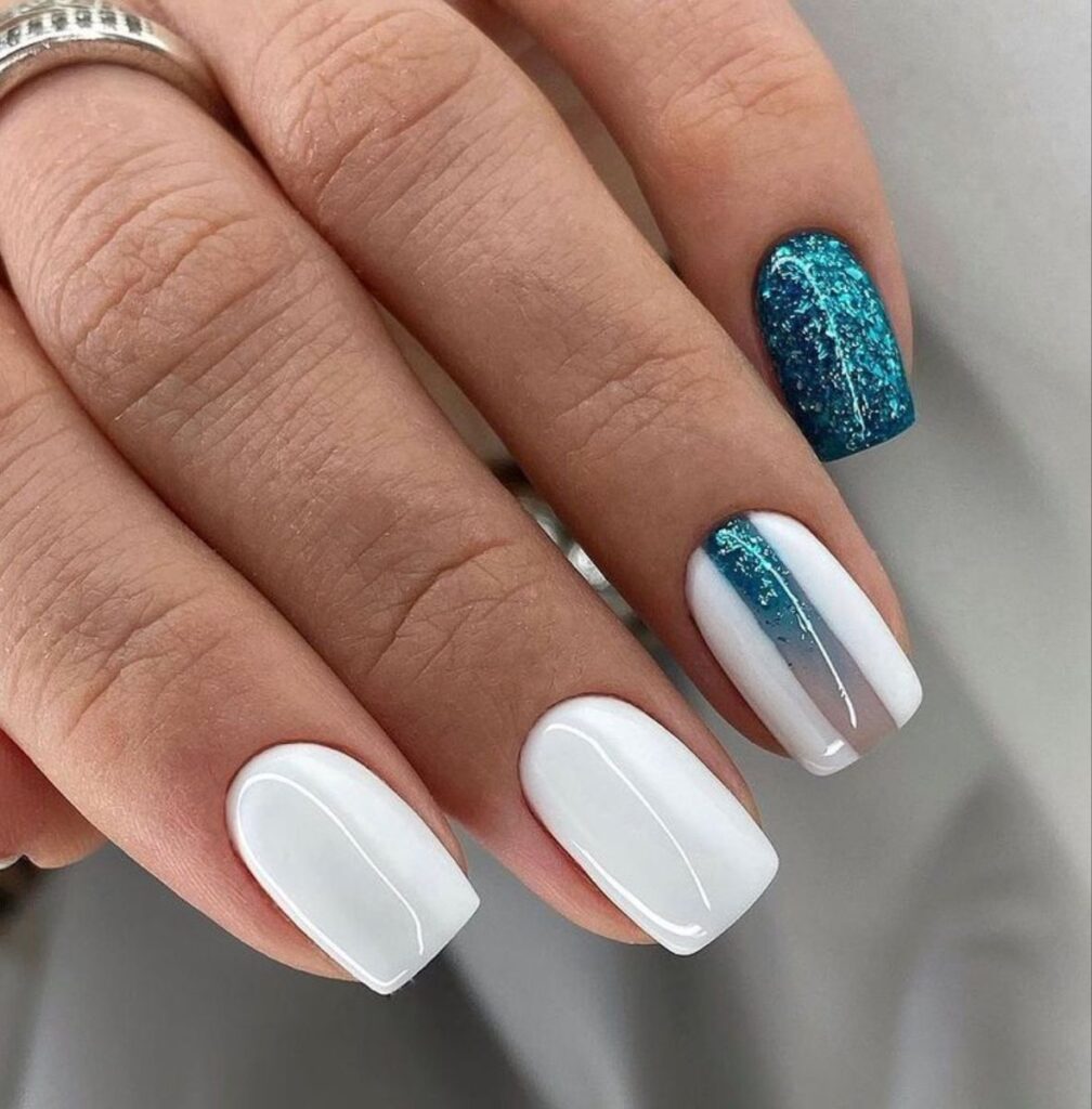 این طرح که یادآور تلالو نور خورشید در اعماق اقیانوس است، برای مراسمهای رسمی و شبنشینیها انتخابی بینظیر است. همچنین ایجاد هاله های کهکشانی با ترکیب این سبز با کمی نقرهای یا سرمهای تیره، میتواند حسی از بیکرانگی را به دستان شما هدیه دهد.