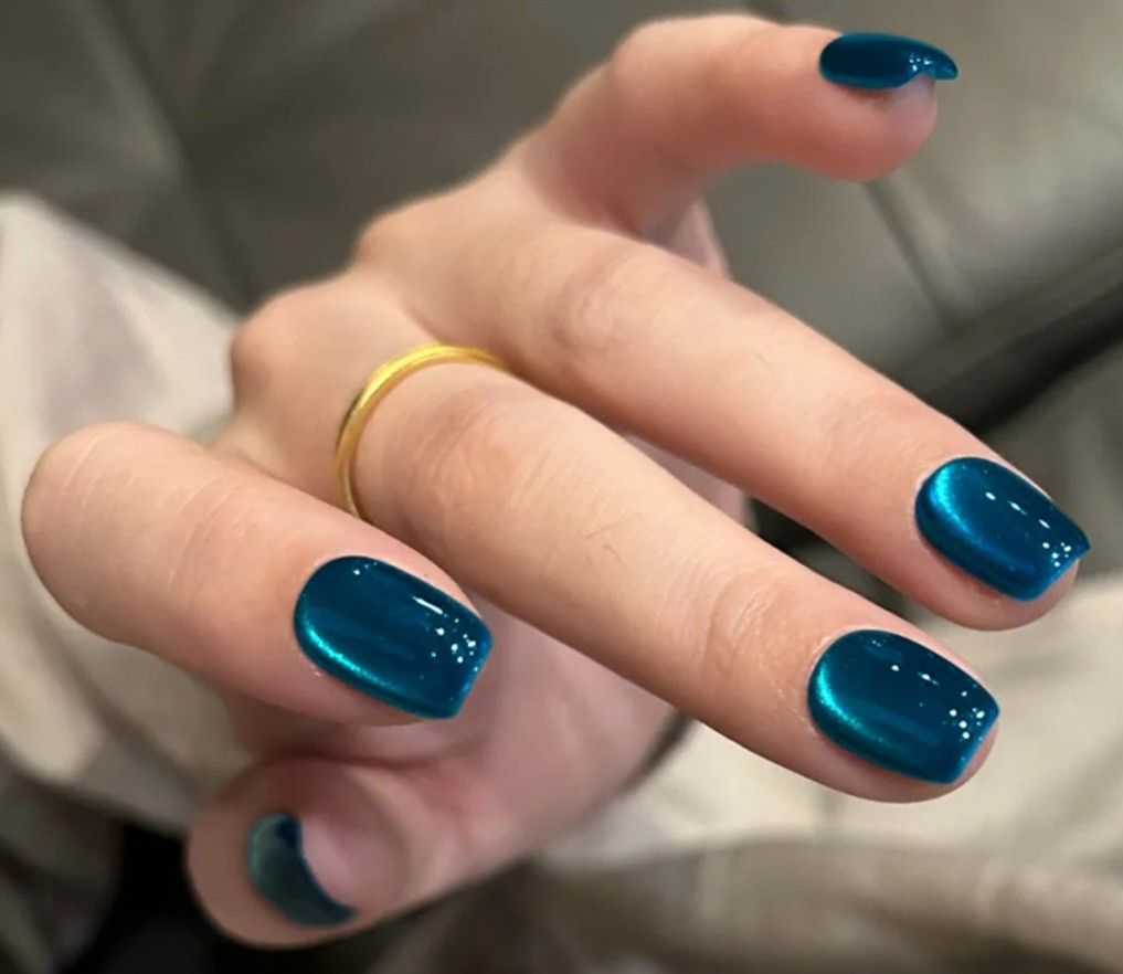 ناخن رنگ سال 2026 پتانسیل بالایی برای اجرای تکنیک «چشم گربهای» (Cat Eye) یا همان ناخنهای مخملی دارد. در این روش با استفاده از آهنرباهای مخصوص، ذرات درخشان داخل لاک به گونهای هدایت میشوند که گویی نوری لغزان در اعماق یک سنگ قیمتی مانند زمرد در حال حرکت است.