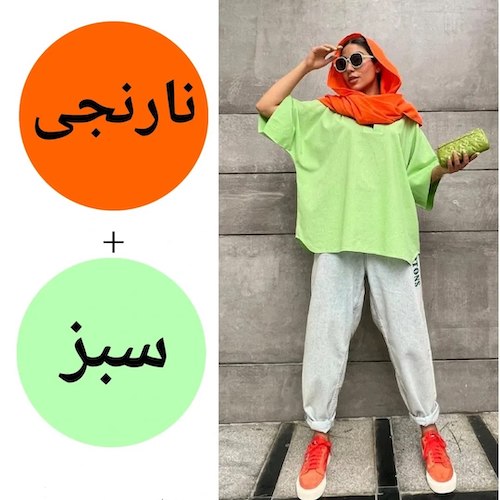 ترکیب نارنجی با سبز زیتونی، سبز زمردی یا سبز نعنایی استایلی طبیعی و هماهنگ ایجاد میکند. این ترکیب برای فصول پاییز و بهار عالی است و حس طراوت و پویایی دارد.