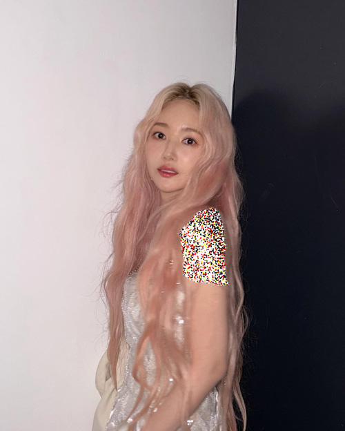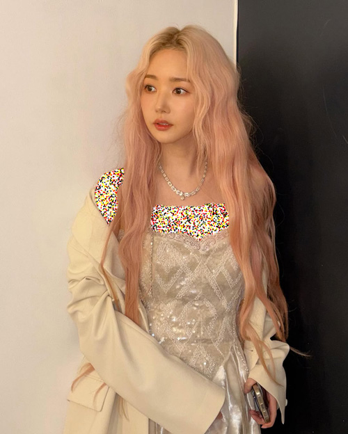 این بازیگر بیبیفیس و خوشپوش، موهای بسیار بلندی دارد، اما معمولا برای تغییر مدل موهایش از کلاهگیسهایی با اندازهها و رنگهای مختلف بهره میبرد. در عکسهای جدید پارک مین یونگ، او با پیراهن آستین بندی و کوتاهی که تزئینات بسیار درخشانی بر روی آن به چشم میخورد، دیده میشود. این پیراهن با کت بلیزر اورسایز و شیریرنگ و موهای بلند و صورتی او همراه شدهاست.