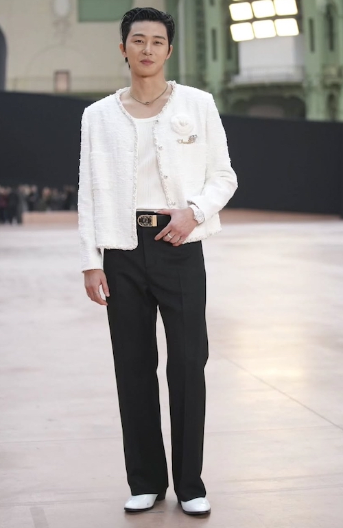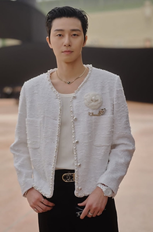 او با کت سفیدرنگ خود از پارچهی توئید شنل و با لبههای مرواریددوزیشده، در این مراسم ظاهر شد و طوفانی به پا کرد. حضور پارک سو جون در این رویداد نشاندهندهی ارتباط قوی او با دنیای مد و فشن است. استایل شیک و انتخابهای مد او همواره مورد توجه رسانهها و طرفداران قرار میگیرد.