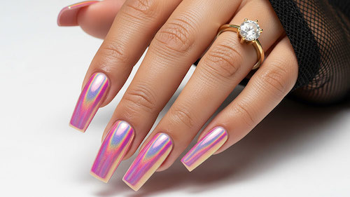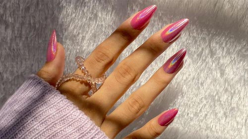 به دنیای جادویی انواع مدل لاک هولوگرامی صورتی خوش آمدید، جایی که زیبایی کلاسیک رنگ صورتی با درخشش خیرهکننده و چندبُعدی افکت هولوگرافیک در هم میآمیزد. رنگ لاک هولوگرامی صورتی با ذرات میکروسکوپی و منشوری خود، نور را به طیفی از رنگهای رؤیایی تجزیه میکند و با هر حرکت دست، رقص نور و رنگی چشمنواز را به نمایش میگذارد، از صورتی ملایم پاستلی گرفته تا رزگلد درخشان و حتی یاسی و هلویی پنهان در عمق آن. در ادامه به مدلها و تناژهای خوشگل و کیوت طراحی لاک هولوگرامی صورتی میپردازیم.