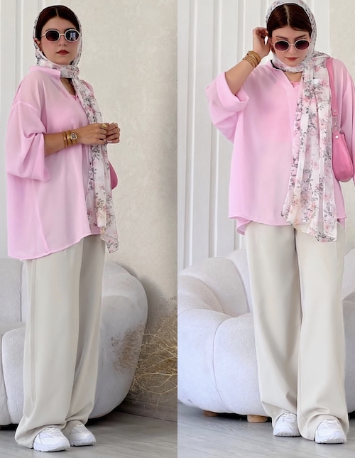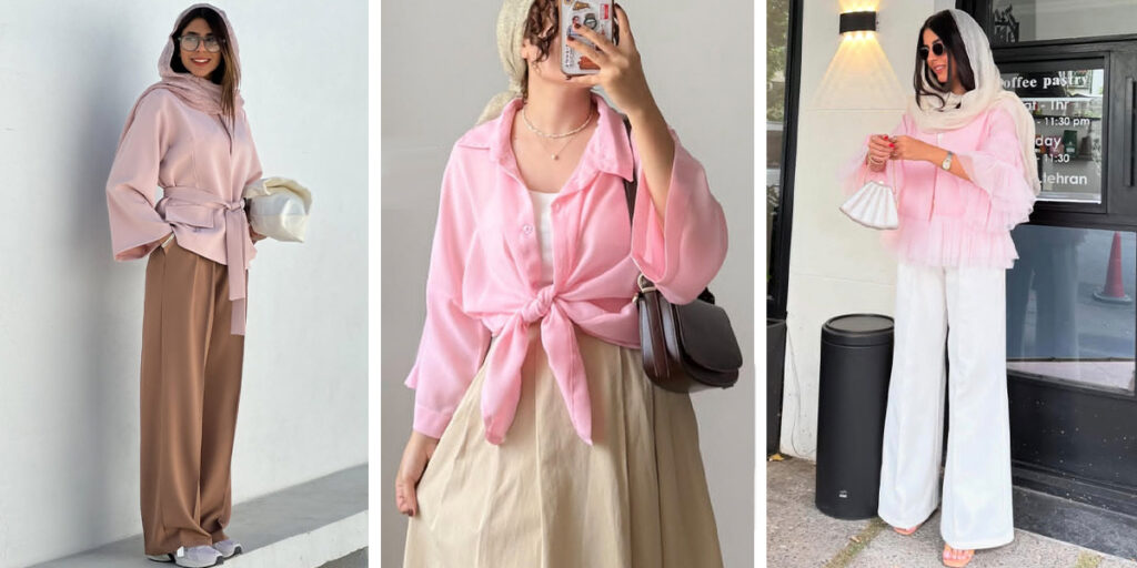 در انتخاب آیتمها، صورتی پودری به راحتی در انواع لباسها جا میگیرد: پلیورهای نخی یا کشمیری، بلوزهای حریر، کتهای کتان یا پشمی و حتی شلوارهای پارچهای یا جین. برای استایل روزمره، ترکیب شومیز صورتی پودری با شلوار بژ یا سفید و کفش لوفر کرم، ظاهری دلنشین و راحت به شما میدهد. برای یک استایل اداری یا رسمی، کت صورتی پودری روی پیراهن سفید به همراه شلوار طوسی روشن و کفش پاشنهدار نود یا خاکستری، بسیار شیک است. همچنین، برای قرارهای دوستانه یا کژوال، دامن پلیسهای صورتی با ژاکت طوسی و کتانی سفید، انتخابی زیبا و دلنشین خواهد بود. اکسسوریهای طلایی یا بافتهای طبیعی مثل کیفهای چرمی روشن نیز میتوانند این استایل را تکمیل کنند.