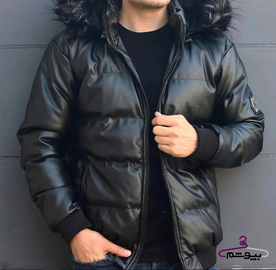 کاپشن فوق زیبای چرم پفکی ضخیم داخل خز -وزن ۱ کیلو
