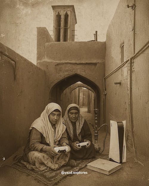 آنها در حال بازی با پلیاستیشن، گرفتن سلفی با آیفون، یا با به دست داشتن اپل واچ و کیفهای برند «دیور» دیده میشوند و همین تضاد خلاقانه بین سنت و مدرنیته، واکنشهای جالبی را در شبکههای اجتماعی برانگیخته است. این تصاویر نهتنها حس نوستالژی را زنده میکنند، بلکه با طنز و نگاهی هنرمندانه، فاصلهی بین گذشته و حال را به شیوهای بصری و جذاب پر کردهاند. بسیاری از کاربران این آثار را تجسمی از ایرانِ موازی دانستهاند؛ ایرانی که در آن سنتهای کهن در دل سبک زندگی مدرن تنیده شدهاند. برخی نیز این آثار را نقدی بر شیفتگی نسل امروز به تجملات دانستهاند که حتی اگر در دوران قاجار هم زندگی میکردند، باز به دنبال برندهای روز و تکنولوژیهای نوین بودند. این پروژهی تصویری به خوبی نشان میدهد که چگونه هوش مصنوعی میتواند ابزار قدرتمندی برای بازآفرینی فرهنگی و گفتوگو میان نسلها باشد.