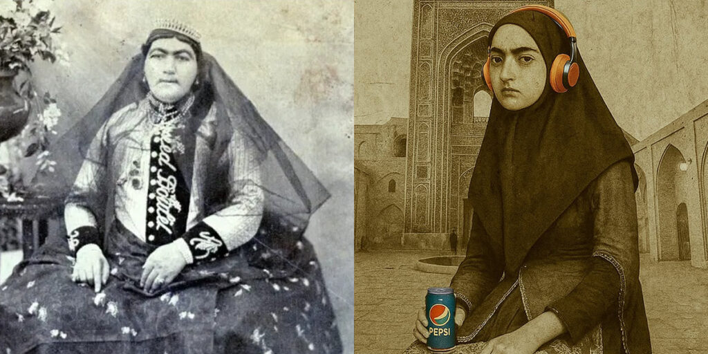 در روزهای اخیر مجموعهای از تصاویر که توسط هوش مصنوعی خلق شدهاند، توجههای زیادی را در فضای مجازی به خود جلب کردهاند. این تصاویر با ترکیب جالبی از تاریخ و تکنولوژی، پسران و دختران دوران قاجار را با چهرههای تپل، لباسهای اشرافی و حالتهای آشنا از نگارگریهای سنتی به تصویر کشیدهاند، اما نکتهی متفاوت اینجاست که این شخصیتها در فضایی کاملاً امروزی قرار دارند.