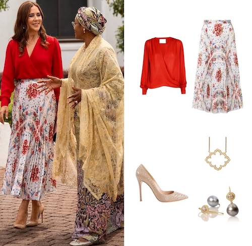 در نخستین روز سفر، این ملکه پیراهنی گلدار از «لادابل جی» (La DoubleJ) پوشیده بود و با کمربند و کفشهای چرمی ساده، ترکیبی ملایم و روزمره ارائه داد. در ادامهی همان روز، هنگام دیدار با رئیسجمهور و بانوی اول نیجریه، ترکیب بلوز قرمز پیچشی از «جسپر هوورینگ» (Jesper Høvring) با دامن گلدار پلیسه از «پل اند جو» و کفشهای پایتون رنگ پوست، جلوهای رسمی و درعینحال پرطراوت داشت.