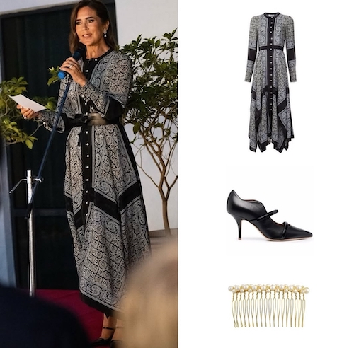 در روز دوم سفر، ملکه مری با پیراهن بلند طرحدار از «می و ام» و کت «رالف لورن» در بازدیدهای میدانی حاضر شد. ترکیب کیف چرمی، کمربند «مکس مارا»، عینک آفتابی از «ریبن» و صندلهای جلوباز، حالوهوایی کاملا کاربردی و تابستانی داشت.
