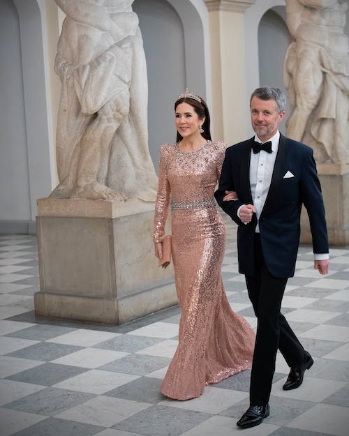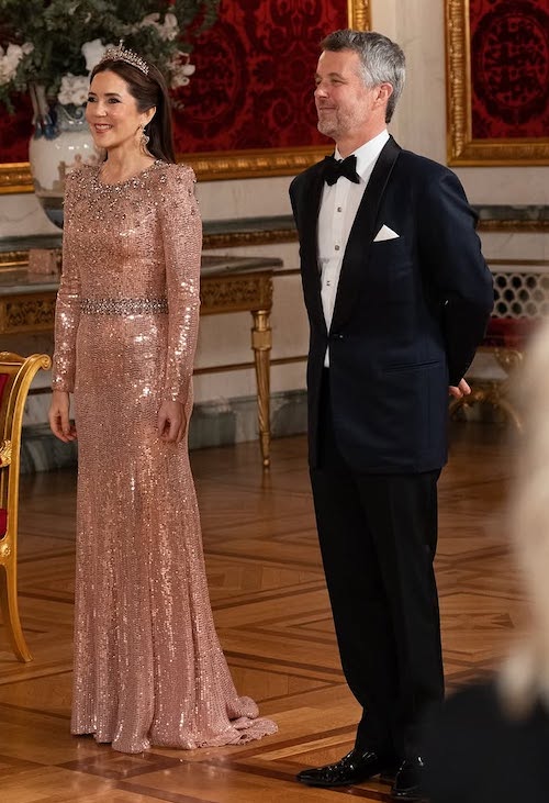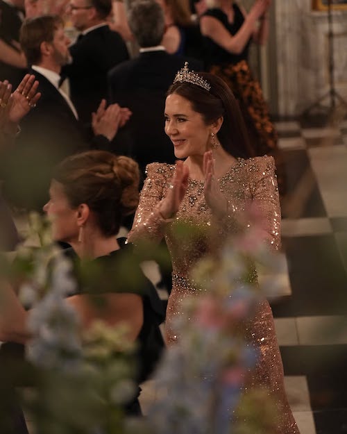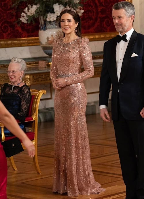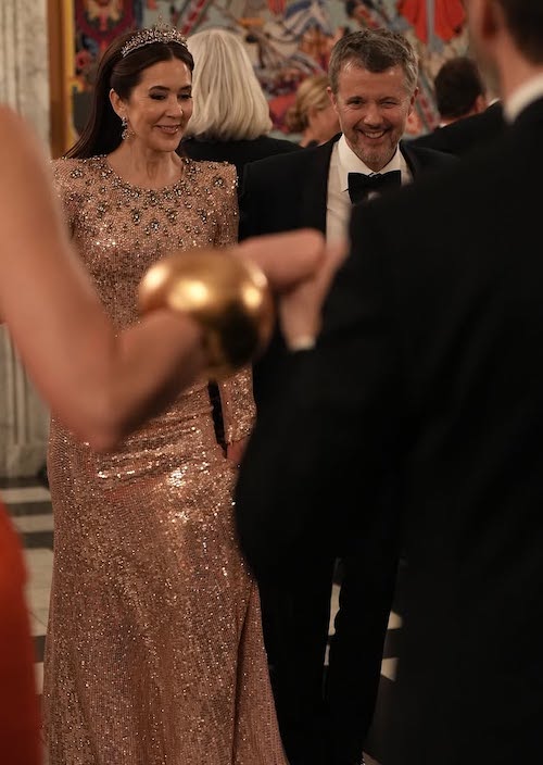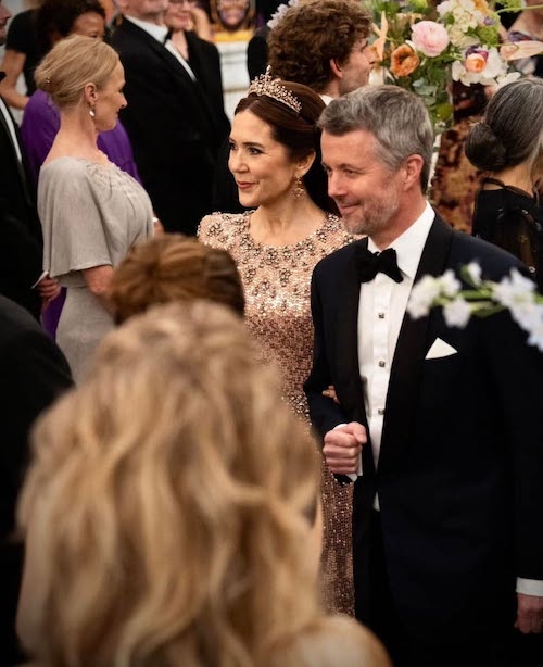 این لباس با جزئیات پولکدوزیشده و برشهای ظریف، جلوهای شیک و باشکوه دارد و کیت میدلتون نیز در مراسم عروسی ولیعهد اردن در سال ۲۰۲۳ آن را به تن کرده بود. ضیافت هنر و فرهنگ، رویدادی با سابقه تاریخی است که از دوران پادشاه کریستین هشتم تاکنون ادامه دارد و ملکه مری، همراه با پادشاه فردریک، سنت برگزاری آن را حفظ کرده است. این مراسم با حضور چهرههای برجستهی دنیای هنر و فرهنگ برگزار شد و مهمانان در تالار بزرگ کاخ از ضیافت شام و برنامههای سرگرمکننده لذت بردند.