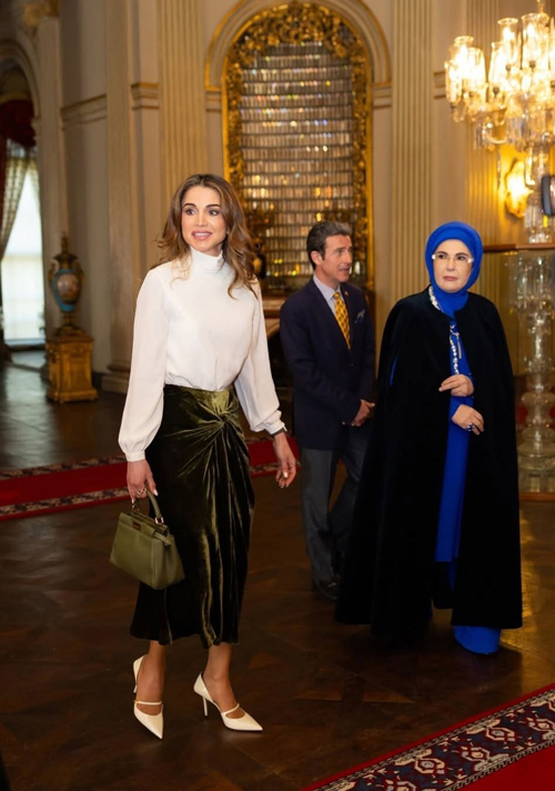 ملکه رانیا با انتشار تصاویری از این دیدار، با اشاره به میزبانی ترکیه، از «گرمی استقبال و مهمان‌نوازی» قدردانی کرد و اعلام کرد این ملاقات در چارچوب همراهی او با پادشاه اردن در این سفر رسمی صورت گرفته است. رانیا در این سفر سیاسی، پالتوی بلند کله‌غازی رنگش را با شومیز شیک یقه ایستاده سفید رنگش ست کرده بود و زیر آن دامنی مخمل و بسیار شیک به رنگ سبز به تن کرده بود. جذابیت این استایل رانیا را کیف سبز او تکمیل میکرد.