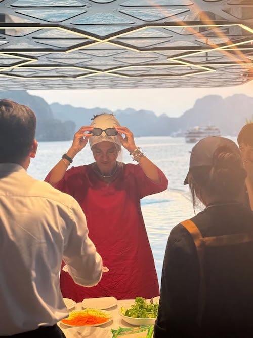 این پیراهن با پارچهای سبک و مناسب برای روزهای گرم، او را در عین شیکپوشی، راحت نشان میداد. رنگ قرمز پیراهن، انتخابی جسورانه بود که نگاهها را به سمت خود جلب کرد و شخصیت پرانرژی و جسور جاویدنیا را بازتاب داد. جاویدنیا برای تکمیل این استایل، از یک سربند سفید ساده استفاده کرد که ترکیب زیبایی با رنگ پیراهن ایجاد میکرد و حالتی تابستانی و بیدغدغه به استایلش میبخشید. عینک آفتابی مشکی نیز اکسسوری تکمیلکنندهی این ترکیب بود و علاوه بر محافظت از چشمان او در برابر آفتاب، به استایلش ظاهری مدرن و شیک اضافه کرده بود. این انتخابها نشاندهندهی شناخت خوب این بازیگر از مد و توانایی ترکیب رنگها و اکسسوریها برای خلق ظاهری منحصر به فرد بودند.