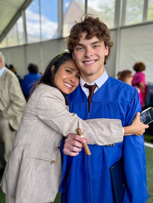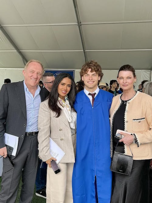 سلما هایک برای همراهی با پسرخواندهاش، یعنی پسر همسرش، در این مراسم حضور یافته بود و حمایت و محبت خود را به شکلی صمیمانه نشان داد. در کنار او، لیندا اوانجلیستا نیز برای جشن گرفتن موفقیت تحصیلی پسر خود در این مراسم حضور داشت و حس مادرانهاش را با افتخار به نمایش گذاشت. حضور همزمان این دو زن موفق و تأثیرگذار، تصویری از اتحاد، احترام و عشق خانوادگی را در فضایی آرام و صمیمی ترسیم کرد. از نظر استایل، هر دو با سلیقهی خاص و منحصر بهفرد خود درخشیدند. لیندا اوانجلیستا ظاهرش را با یک کت کرمیرنگ از برند «شنل» کامل کرده بود که به استایل کلاسیک و وقار همیشگیاش جلوهای دوچندان میبخشید. در مقابل، سلما هایک با انتخاب یک شومیز و شلوار واید سفید، کت خاکیرنگ و یک دستمال گردن گلدار، ترکیبی لطیف، تابستانی و شیک را ارائه داد که جلوهای از ظرافت زنانه و خلاقیت شخصیاش بود. هر دو استایل، در عین تفاوت، بازتابی از شخصیتهای مستقل و خوشپوش این دو زن الهامبخش بودند.