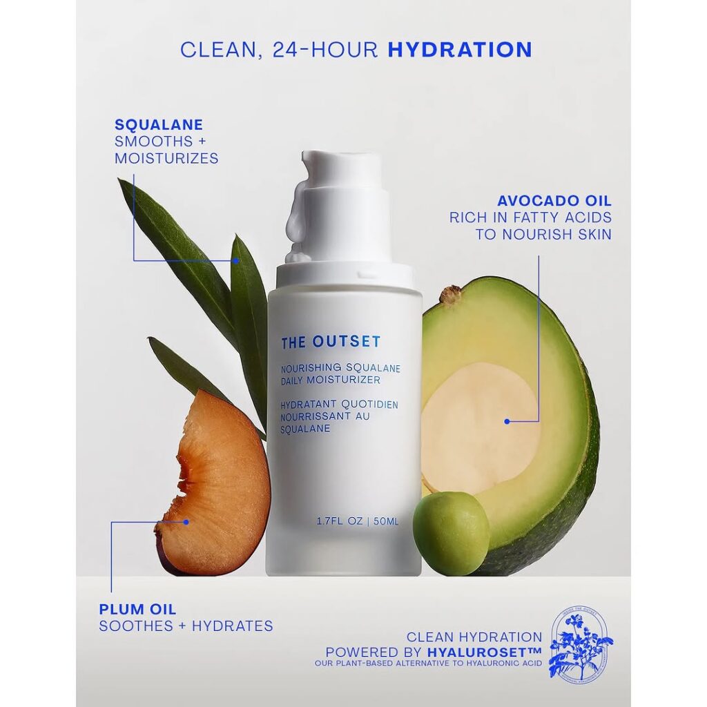 یکی از محصولات کلیدی برند «The Outset»، مرطوبکنندهی روزانه حاوی اسکوالان است که ترکیبات مغذی مانند روغن زیتون، نارگیل، آووکادو و ویتامین E را در خود جای داده است. این محصول علاوه بر تغذیه عمقی پوست، به شفافیت و روشنتر شدن آن کمک میکند و انتخابی ایدهآل برای تکمیل روتین مراقبت از پوست به شمار میرود.