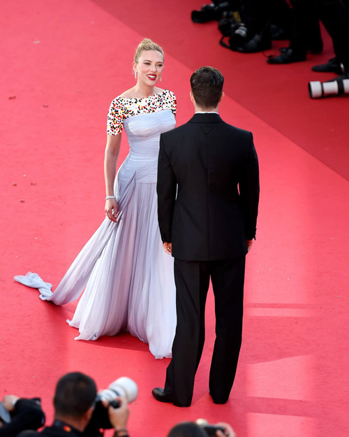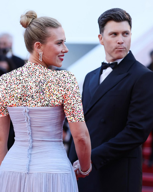 این انتخاب هوشمندانه نهتنها به زیبایی طبیعی اسکارلت میآمد، بلکه با فضای مجلل و باشکوه جشنواره کن نیز هماهنگی کاملی داشت. نکته بامزه و دلنشین شب، لحظهای بود که همسر اسکارلت، کالین جاست، با اندکی تأخیر به فرش قرمز رسید. همین تاخیر باعث شد اسکارلت با خوشحالی و شوق به سمت او بدود و صحنهای احساسی و در عین حال بانمک خلق شود. این لحظهی ساده و انسانی، در میان انبوه لباسهای لوکس و قابهای رسمی، احساسی واقعی و صمیمی به فضای رویداد بخشید و واکنشهای مثبت زیادی در فضای مجازی به همراه داشت.