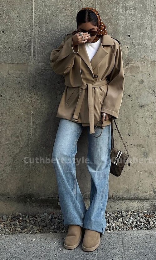 ترنچ کت کوتاه با شلوار نیمبگ و نیمبوت آگ