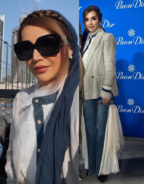 استایل او در این مراسم بسیار خاص و متفاوت بود. او با کت سفید و شلوار جین عجیبی که زائدههایی از پارچههای سفید داشت، ظاهر شده بود که ترکیبی از سادگی و پیچیدگی را به نمایش میگذاشت. این استایل، همزمان با جذابیت و سلیقه خاص او، توجه بسیاری از حاضران را جلب کرد. در کنار شبنم قلیخانی، محمدرضا گلزار نیز از بازیکنان حاضر در این مسابقات بود که به عنوان یکی از چهرههای شناختهشده در دنیای ورزش و سینما، فضای مراسم را رنگ و بوی خاصی بخشید. این ایونت در دبی برگزار شد و به عنوان فرصتی برای ملاقات افراد برجسته از دنیای هنر و ورزش محسوب میشد.