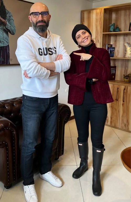 او در این استایل از شلوار اسکینی مشکی به همراه بوتهای بلند مشکی استفاده کرده که بهخوبی جذابیت و شیک بودن استایلش را به نمایش میگذارند. بلوز و سربند مشکی و هماهنگ با دو آیتم دیگر، هماهنگی بینظیری ایجاد کرده و به زیبایی استایل او افزودهاند. اما نکتهای که این استایل را برجسته کرده، کت مخمل زرشکی رنگی است که شبنم به آن اضافه کرده است. رنگ زرشکی در این فصل بسیار پرطرفدار است و این کت بهخوبی با سایر اجزای استایل ترکیب شده تا ظاهری شیک و بهروز به شبنم بدهد. جالبتر این که شبنم قربانی پیشتر نیز این کت مخمل زرشکی را در یک استایل دیگر به کار برده بود و این نشاندهندهی خلاقیت و تنوع در انتخابهای اوست. به نظر میرسد شبنم بهخوبی میداند چگونه یک آیتم خاص را در استایلهای مختلف به کار ببرد و از آن یک ظاهر جدید و شیک بسازد. استفادهی دوباره از این کت، اما در استایلی جدیدتر، بهطور هوشمندانهای نشان میدهد که او با این کت چه استایلهای متفاوتی میتواند خلق کند. این نشاندهندهی هوش مد و توانایی او در ترکیب لباسها بهصورت منحصر به فرد است.