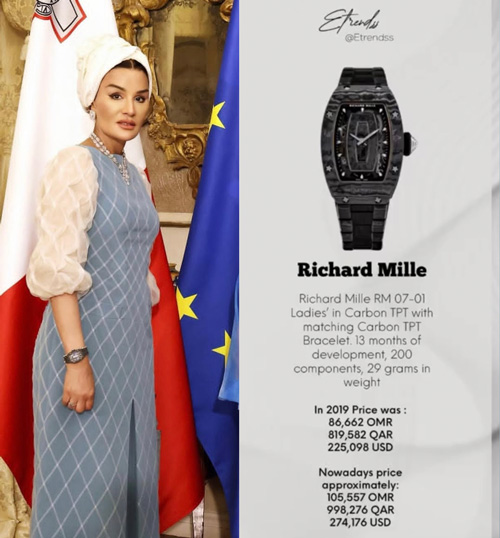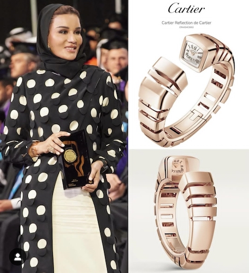 ترکیب دقیق رنگها، استفاده از برشهای خاص و پوششهای فاخر، از او یک نماد قدرت و ظرافت در دنیای مد ساخته است. علاوه بر لباسها، اکسسوریهای او نیز همواره گرانقیمت و خاص انتخاب میشوند؛ بهویژه ساعتهای مچیاش که بخش جدانشدنی از استایل وی هستند. شیخه موزا اغلب ساعتهایی از برندهای لوکس مانند «کارتیه»، “امگا”، «شنل» و «بووه» (Bovet) را انتخاب میکند؛ ساعتهایی که علاوه بر کارکرد لوکس بودن، نماد قدرت، ظرافت و جایگاه اجتماعی او نیز محسوب میشوند. این انتخابهای دقیق و چشمگیر نشان میدهد که او نهتنها به پوشش بهعنوان ظاهری زیبا، بلکه بهعنوان بیانیهای شخصی از هویت و قدرت زنانه مینگرد. در ادامه نگاهی داشتهایم به تعدادی از ساعتهای مچی شیخه موزا. با چیبپوشم همراه باشید.