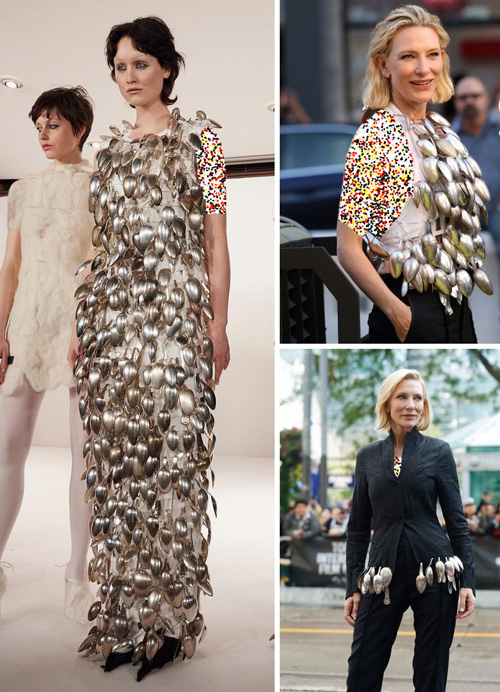 ازجمله برجستهترین دنبالکنندگان این رویکرد، هداکوا (Hodakova) است. الن هداکوا لارسن، طراح سوئدی است که طراحیهایش بر پایهی پایداری، بازآفرینی و جسارت بنا شده است. کیت بلانشیت، بازیگر نامدار هالیوودی، در نخستین نمایش فیلم «سرزمینهای مرزی» با لباسی از این طراح روی فرش قرمز لسآنجلس ظاهر شد، لباسی که از ۱۰۲ قاشق ساخته شده بود. هداکوا جایزهی سال ۲۰۲۴ «الویاماچ» را نیز از آن خود کرد (LVMH، بزرگترین شرکت چندملیتی فرانسوی و بزرگترین هلدینگ لوکس دنیا است. این نام مخفف سه برند معروف فرانسوی، لوئیویتون، موئه و شاندون، و هنسی است). او در آثارش با استفاده و بازتعریف عناصری آشنا مانند سگک کمربند، قطعات فلزی شکسته، ساعتهای زنگزده و ظروف آشپزخانه لباسهایی مفهومی و زنانه خلق میکند.