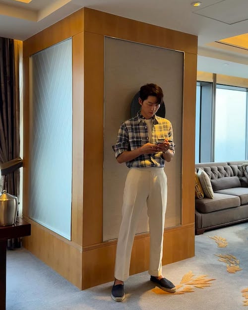 او که در سریال «وینچنزو» نقش یک وکیل خشن را ایفا میکرد، با پیراهن چهارخانهی آبی و سفید و شلوار پارچهای سفید، ترکیبی شیک و نیمهرسمی را به نمایش گذاشت و توجههای بسیاری را جلب کرد. اکسسوریهای او نیز استایلش را کامل کردند؛ دستمال گردن طرحدار، ساعت مچی با بند چرمی مشکی و البته حلقهی ازدواج او که در میان جزئیات ظاهریاش، جلوهای خاص داشت. این بازیگر که چند ماه پیش دومین فرزندش به دنیا آمد، با ظاهر متین و شیک خود، بار دیگر ثابت کرد چطور میتوان ساده پوشید اما همچنان تأثیرگذار و خوشاستایل بود.