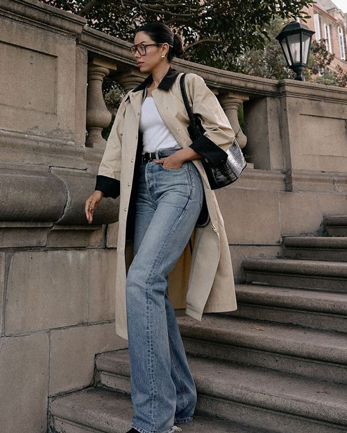 شلوار جین راسته، یکی از مدلهای کلاسیک و شیک است که بهراحتی میتوان آن را با کت بلیزر ترکیب کرد و به استایلی راحت اما شیک دست یافت. این ترکیب به دلیل تناسب متعادل میان رسمی و کژوال، برای محل کار گزینهای عالی محسوب میشود. برای داشتن ظاهری حرفهای، میتوان جین راسته را با یک بلیزر ساختارمند در رنگهای خنثی مانند مشکی، طوسی، کرم یا بژ ست کرد. در زیر بلیزر، یک بلوز ساده، یقه اسکی نازک یا تیشرت سفید مینیمال بپوشید تا استایلتان مرتب و شیک به نظر برسد.