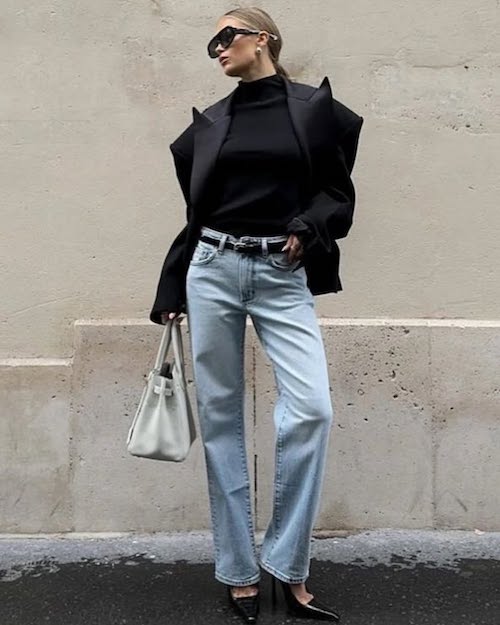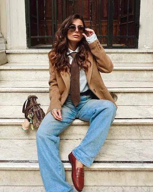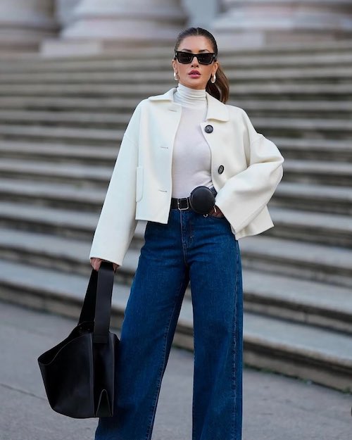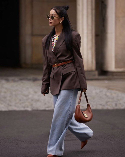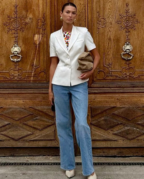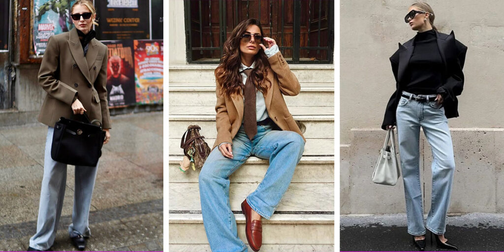 برای تکمیل این استایل، کفشهای لوفر، کتانیهای مینیمال یا بوتهای کوتاه چرمی گزینههای مناسبی هستند، زیرا راحتی و ظرافت را همزمان ارائه میدهند. اضافه کردن کیف دستی ساختارمند، کمربند چرم ظریف و اکسسوریهای مینیمال به این ترکیب، جلوهای حرفهایتر و منظمتر ایجاد میکند. اگر به دنبال استایلی مناسب برای محیط کار هستید که هم راحت باشد و هم شیک به نظر برسد، ترکیب شلوار جین راسته و کت بلیزر انتخابی هوشمندانه است که بدون زحمت، ظاهری مدرن و متناسب ایجاد میکند.