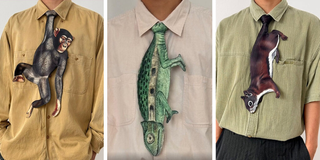 در سالهای اخیر، کراواتها نیز یکی از آیتمهای خاص برای طراحان بودهاند که خلاقیت آنها را به نمایش گذاشته و توسط برندهای مختلف ارائه شدهاند. به تازگی کراواتهایی که اشکالی از حیوانات مختلف از جمله ماهیها و خزندگان در قسمت آویزان آنها کار شده است، در دنیای مد جلب توجه نموده و خبرساز شدهاند. در ادامه نگاهی داشتهایم به چند نمونه از این کراواتهای عجیب.