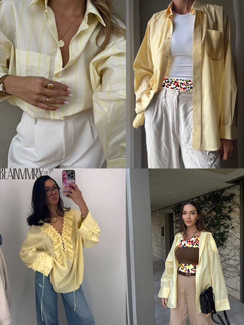 کتهای لیمویی یا همانطور که این روزها ترند است زرد کرهای، اگرچه رنگی شاد دارند، اما چند روزی در میان شیکترین آیتمها باقی میمانند و سپس حذف میشوند. اگر علاقهمند به این رنگ هستید، شومیز لیمویی انتخاب بهتری است که میتواند هم رنگ مورد علاقهتان را وارد استایل کند و هم استایلی زنانه و شیک بسازد.