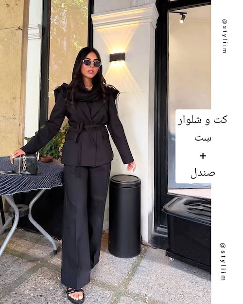۴. کت مشکی با شلوار راسته و کفش لوفر