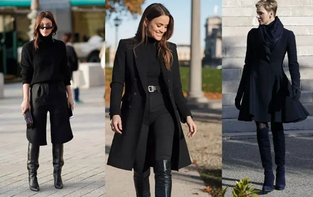 اگر طرفدار تیپ‌های مینیمال هستید، یک ست کاملا مشکی همراه بوت بلند مشکی بهترین انتخاب است. برای مثال ترکیب بافت یقه‌اسکی و دامن کوتاه مشکی، استایل یکدست و شیکی برایتان می‌سازد. این مدل همیشه ترند است و در فصل‌های سرد جلوه‌ی خاصی به ظاهر شما می‌دهد.