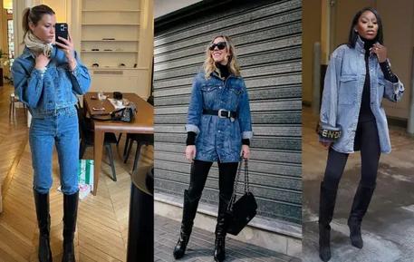 به دنبال استایل متفاوت می‌گردید؟ استایل با کت جین اورسایز و بوت بلند مشکی را امتحان کنید. برای روزهایی که به استایل راحت نیاز دارید، می‌توانید بوت بلند مشکی را با کت جین و شلوار مام‌ استایل بپوشید. در این استایل با کت جین بهتر است شلوار جین را داخل بوت قرار دهید تا بوت‌ها بیشتر به چشم بیایند و قد بلندتر هم به نظر برسید. این تیپ دوستانه و غیررسمی برای خرید یا کافه رفتن کاملا مناسب است.