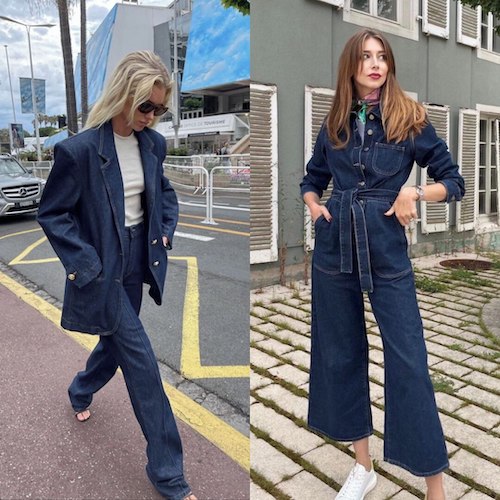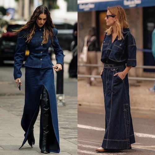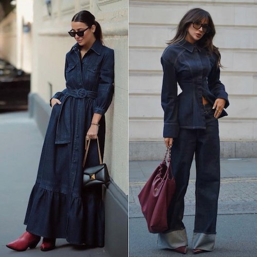 استفاده از آیتمهایی همچون شومیز، شلوار و دامن با جنس جین و رنگهای تیره مانند سرمهای و آبی سیر، میتواند استایلی شیک و جذاب ایجاد کند. جنس جین بهخاطر بافت مقاوم و کلاسیک خود، در ترکیب با رنگهای تیره، ظاهری مدرن و البته خوشاستایل به فرد میبخشد.
