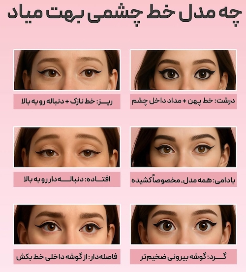 برای داشتن آرایشی گیرا و شیک، توجه به رنگ پوست، فرم صورت، حالت چشمها و دیگر ویژگیهای چهره امری ضروری است و برای داشتن یک خط چشم که چشمان شما را بهزیبایی جلوهگر کند، باید مدل متناسب با چشمان خود را انتخاب کنید. در ادامه نگاهی داشتهایم به فرمهای مختلف چشم و خط چشم متناسب با آن. با چیبپوشم همراه باشید.